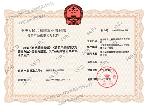 l以先进的实时荧光核酸检测技术研制而成的非洲猪瘟检测产品,通过了中国动物预防控制中心的产品性能验证